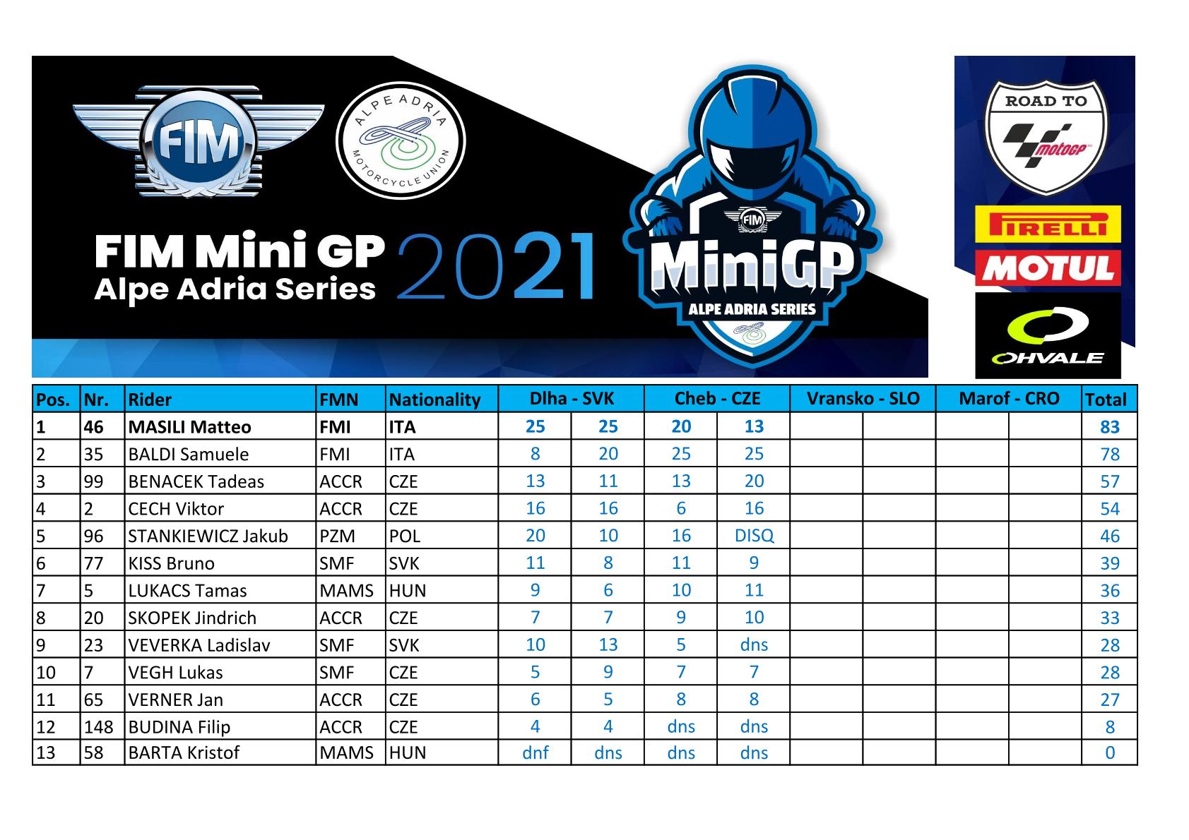 Nový čtyřdílný světový šampionát FIM MiniGP Alpe Adria Series pro jezdce ve věku 10–14 let odstartoval v červenci na okruhu Slovakia Ring. Druhým závodem byl západočeský Cheb, který se konal o uplynulém víkendu. V závodě byli úspěšní italští jezdci, ale také Češi!