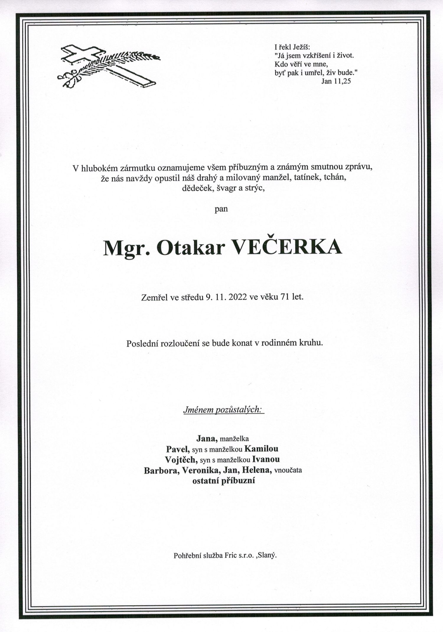 Ve středu 9. listopadu 2022 se naposledy zastavilo srdce Mgr. Otakara Večerky, člena Autoklubu v AČR Slaný. Ve slánském AK zastával zodpovědnou pozici předsedy revizní komise.
