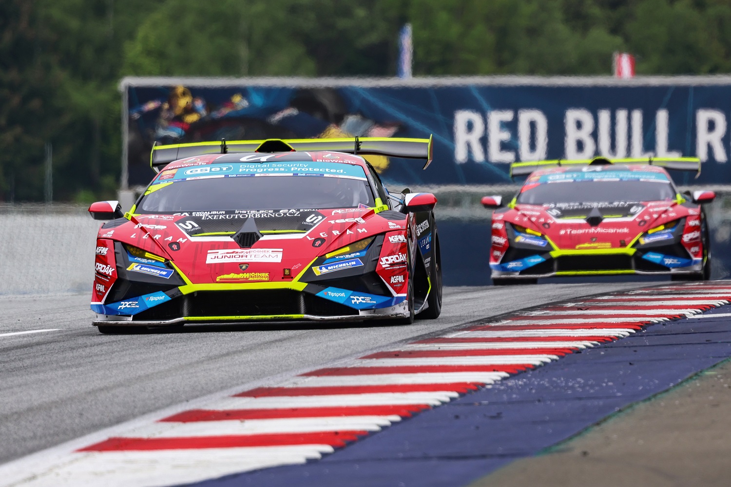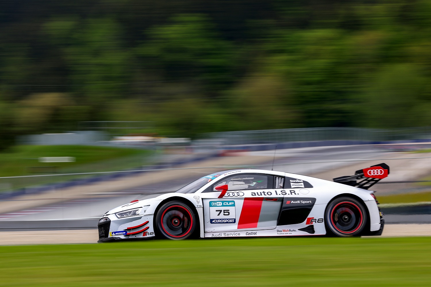 Úvodní závod ESET GT byl na Red Bull Ringu naplánován na nedělní ráno, což značně ztížilo podmínky pro všechny startující. Trať ještě nebyla zcela suchá a opatrnost zejména v prvních kolech byla na místě. Se zrádnými podmínkami se nejlépe vypořádal Filip Salaquarda, který dosáhl na čtvrté prvenství ve sprintu.