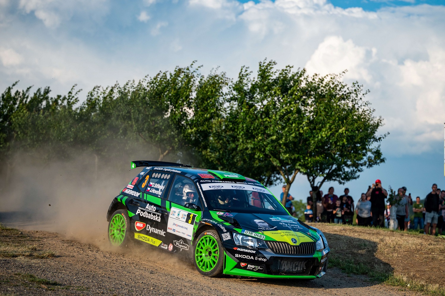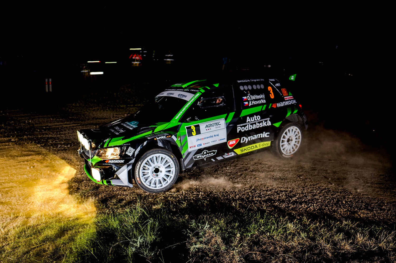 Dominik byl s výsledkem pochopitelně spokojen: „Hustopeče nepatří mezi moje nejoblíbenější rally i když se jedou v krásném prostředí a organizačně tam vždy všechno klape. Asfalt je tam často pokrytý prachem z polí a vinic, letos tam bylo také více šotoliny, takže jsem hlavně první den trochu hledal to správné tempo na trochu nepředvídatelný povrch. Možná jsme mohli zkusit měkčí gumy, protože bylo na hustopečské poměry relativně chladno, ale po bitvě je každý generálem. Druhý den to bylo už o hodně lepší a s deštěm na jedenácté rychlostce jsme se vypořádali lépe než většina ostatních, takže to klaplo až na stupeň vítězů. Věnuji tohle umístění památce Petra Černého.“