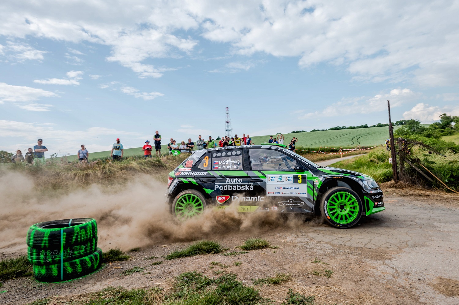 Drobné změny v nastavení vozu pro druhý den se v horké sobotě osvědčily a Dominik získával v již obvyklé hustopečské výhni půdu pod nohama. Přestože ředitel rally Martin Rada tvrdí, že v Hustopečích nikdy neprší, pro závěr sobotní etapy i celé soutěže to neplatilo. A Dominik se spolujezdcem Jirkou Hovorkou si mohli připsat na mokru i celkově druhý čas v jedenácté rychlostní zkoušce. Právě ta rozhodla o tom, že přeskočili Adama v celkovém hodnocení. Celkově obsadili Dominik s Jirkou třetí místo v absolutním hodnocení a druhé místo v hodnocení Mistrovství České republiky. Hustopeče tedy byly pro team úspěšné a nyní je nutné soustředit všechny síly do přípravy na Bohemku, která nás čeká za necelé tři týdny.