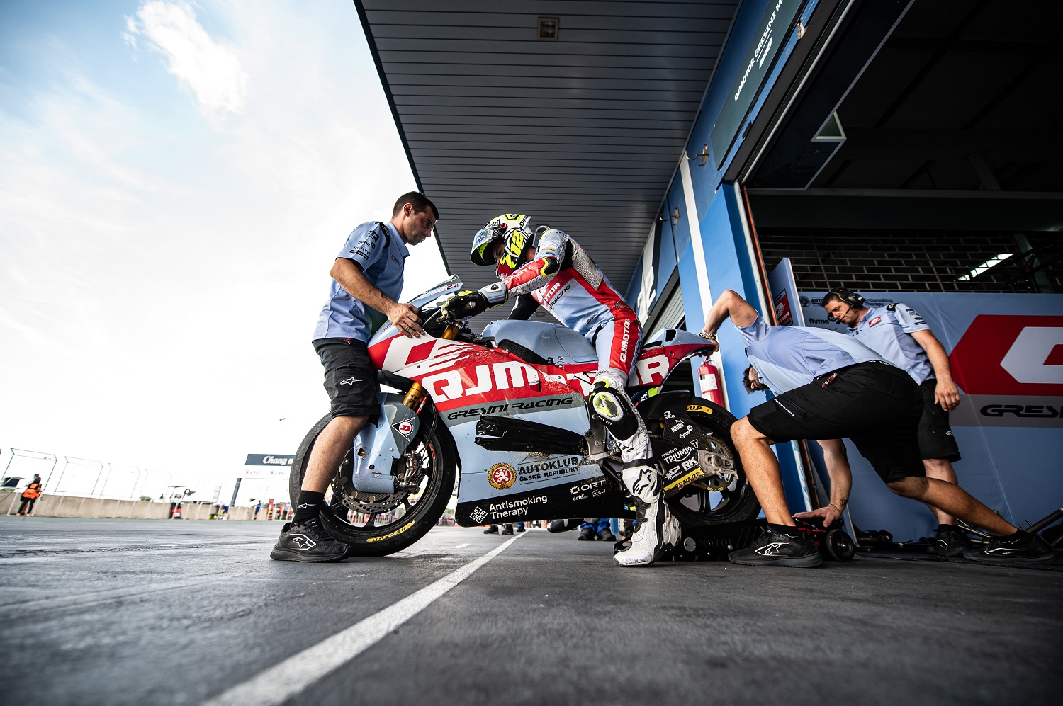 „Čekal jsem, že se poslední změna v nastavení, kterou jsme udělali po pátečním programu, projeví více. Ale moc to nepomohlo. Oproti včerejšku jsem sice zrychlil, ale jen nepatrně. Takže do první části kvalifikace jsme se vrátili k nastavení z Mugella, o kterém víme, že fungovalo dobře. Bohužel se s ním nemůžeme pustit do závodu, protože rychle žere přední pneumatiku. Každopádně jsem zajel slušný čas, který mě posunul do Q2, kde jsem ale spadl hned v prvním měřeném kole. Nevím, jestli to byla moje chyba nebo technická závada, prostě se mi nepovedlo podřadit na správnou rychlost do zatáčky. Motorku jsem sice zvedl a dojel zpátky do boxů, ale byla hodně rozbitá a mechanici udělali kompromis, abych mohl zajet alespoň jedno nebo dvě kola. Na slušný čas jsem už ani nepomýšlel. Pochopitelně mě to mrzí, nezažívám teď úplně dobré chvíle, ale to k tomuhle sportu prostě patří. Na druhou stranu mě i neúspěchy posilují. Psychicky každopádně, protože ten tlak je opravdu obrovský,“ komentoval dnešní den v Thajsku Filip Salač #12.