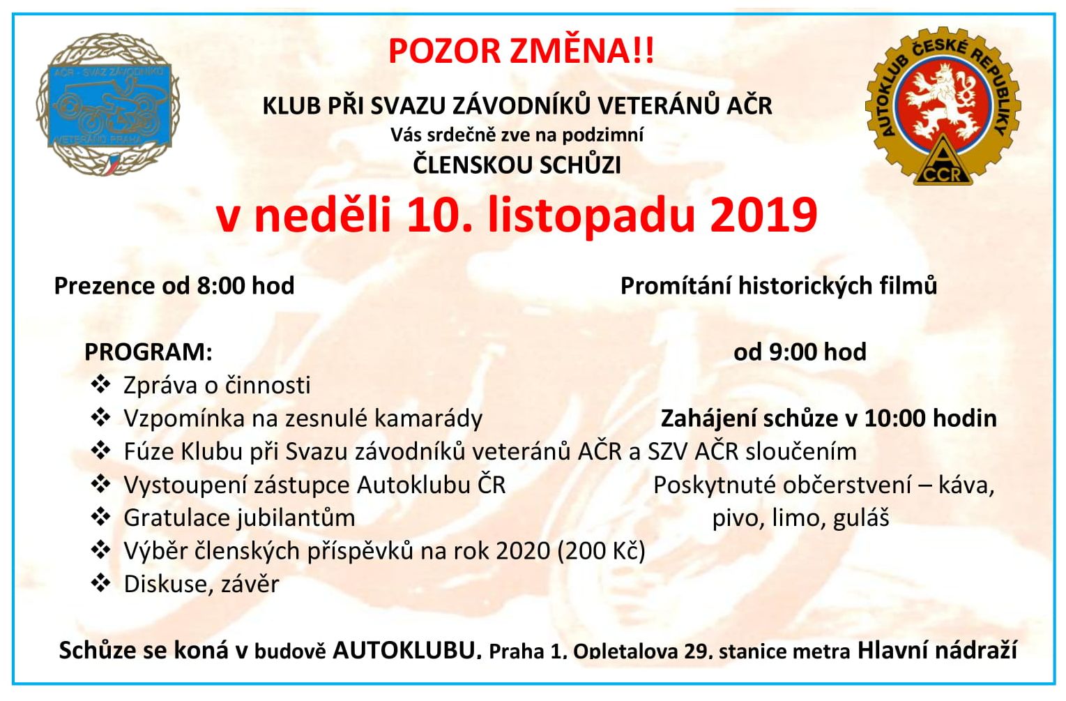 Pozvánka na členskou schůzi 10. 11. 2019