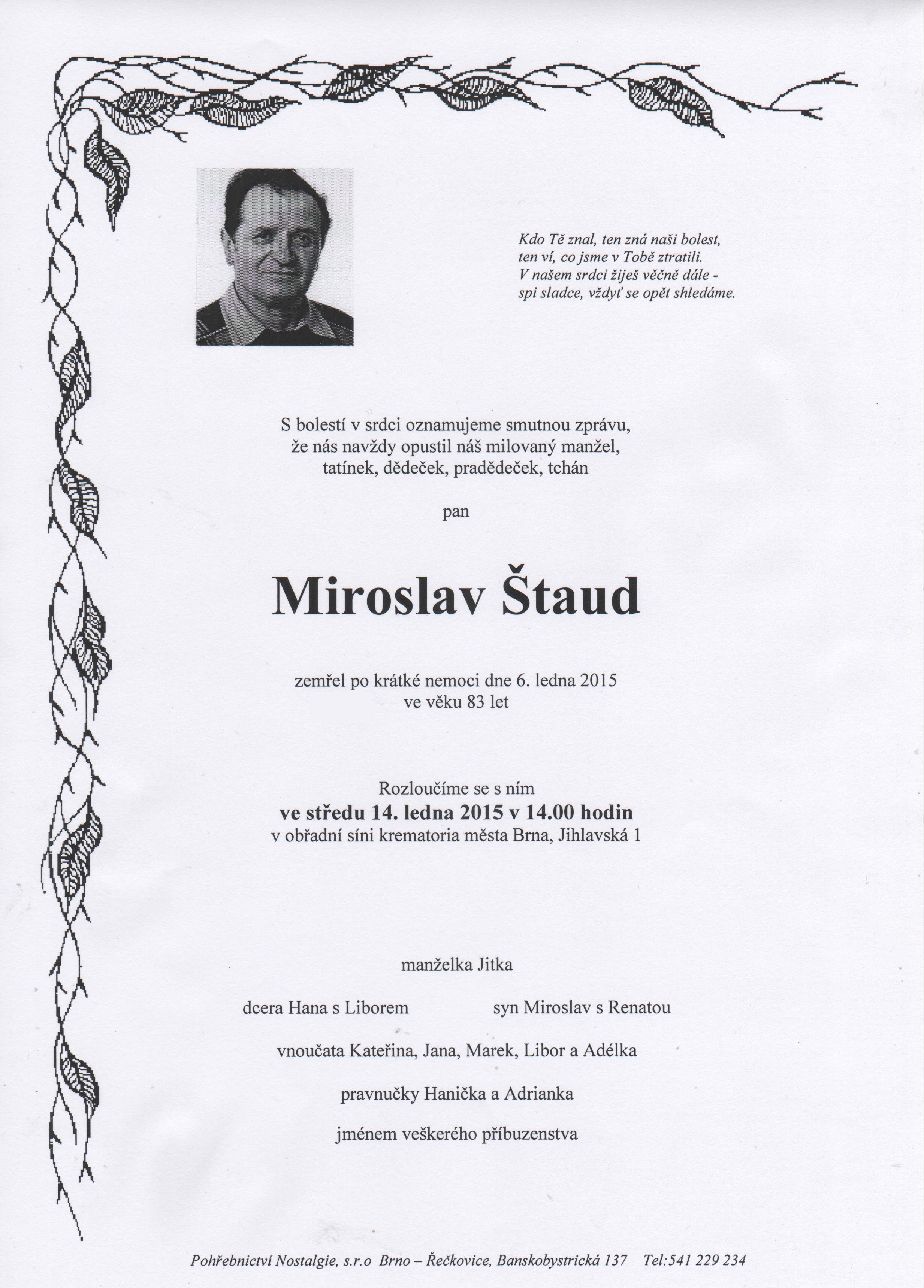 Miroslav Štaud - oznámení o úmrtí
